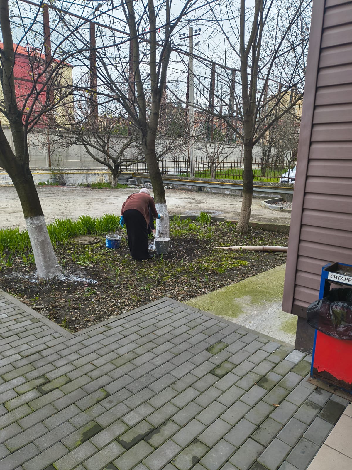 Они убрали свои территории от мусора, побелили деревья и высадили цветы, сожгли мусор.