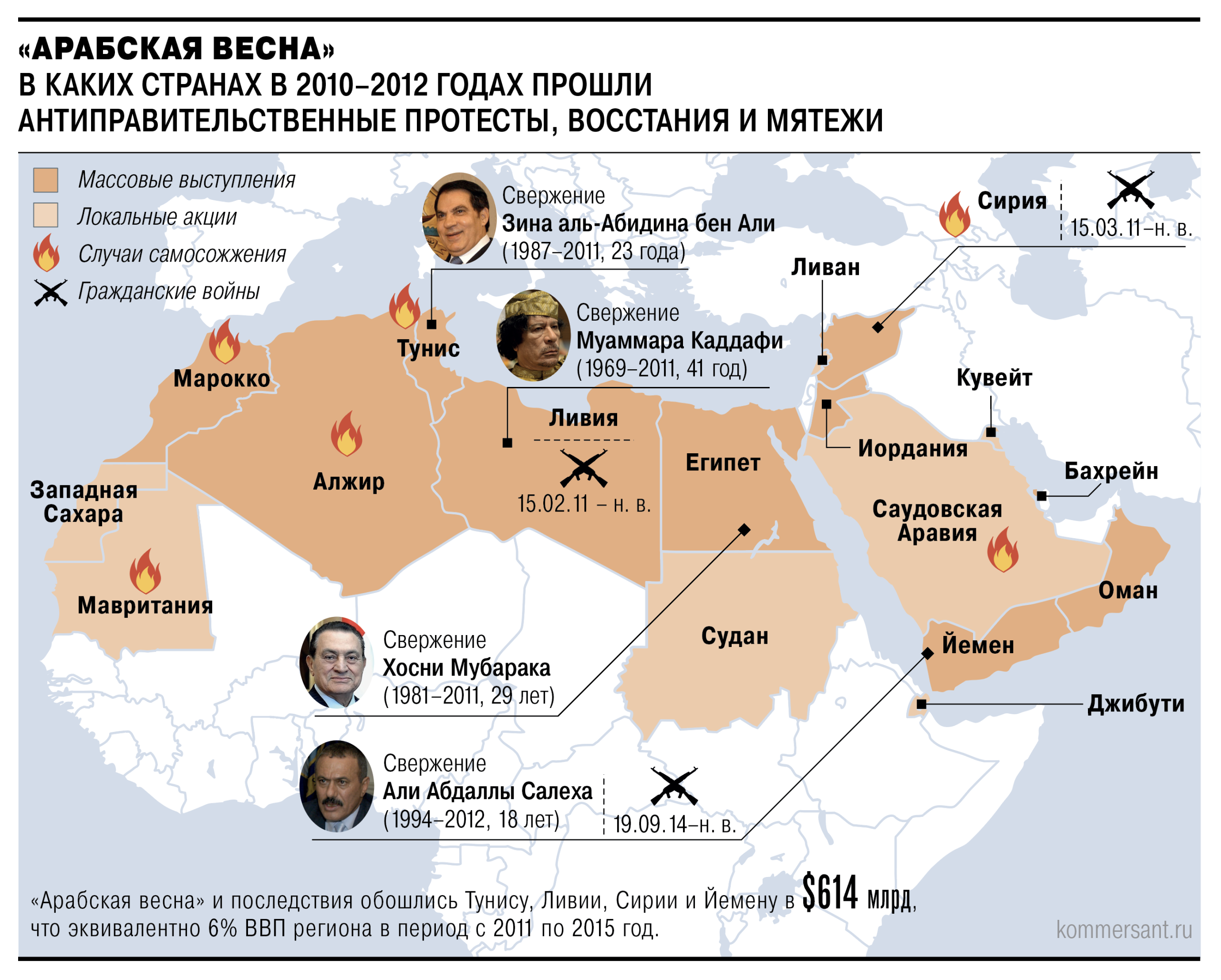 Давайте взглянем, как проходили эти страны «арабскую весну»:
