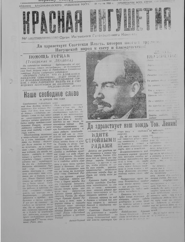 20 апреля 1920 г. основана газета «Красная Ингушетия»