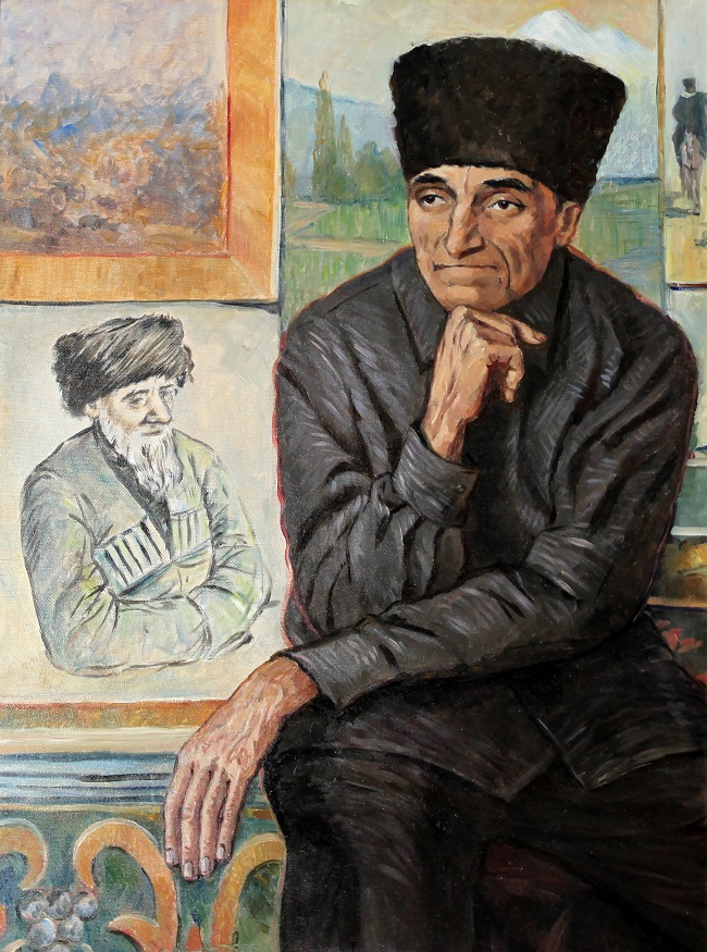 Его дипломная работа «Горцы в засаде» (1930) была связана с национальной военной тематикой. В этом же году ему присваивают звание художника живописца.