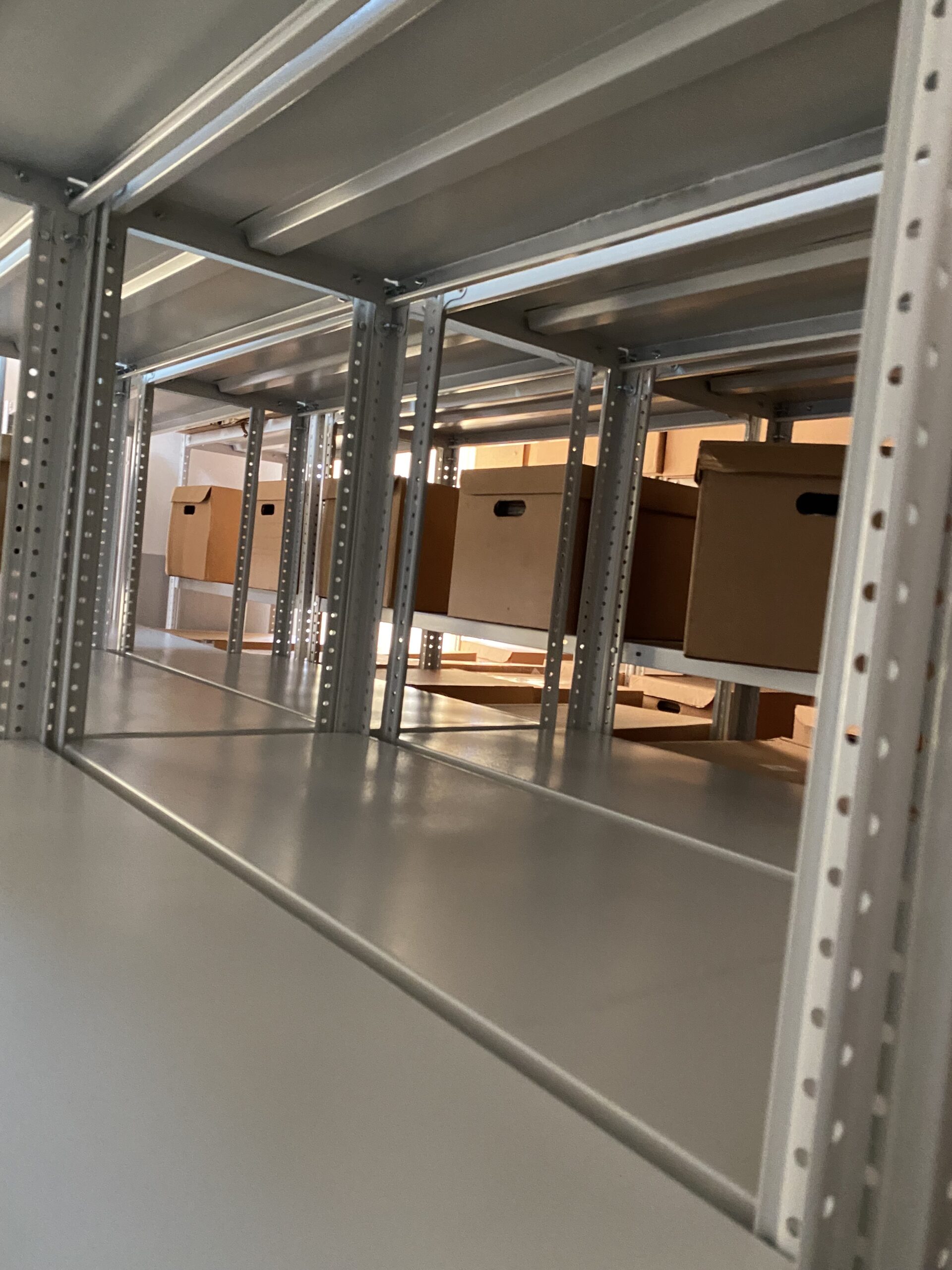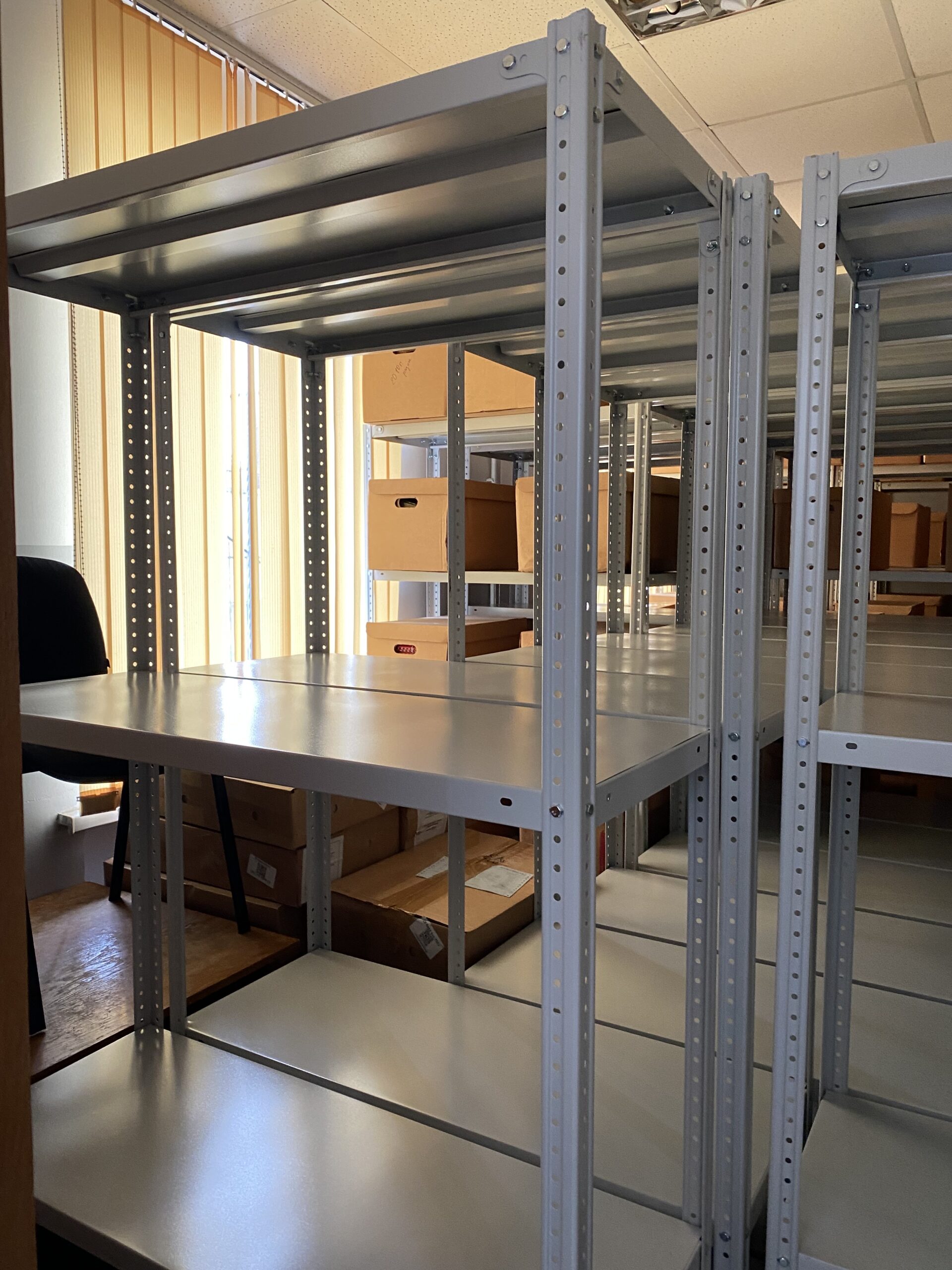 Кроме того, в распоряжение учреждения поступили новые металлические стеллажи, предназначенные для рационального размещения архивных документов, дел и иных материальных носителей. Использование современного стеллажного оборудования позволит оптимизировать пространство архивохранилищ и обеспечить удобный доступ к документам при их учёте и выдаче.