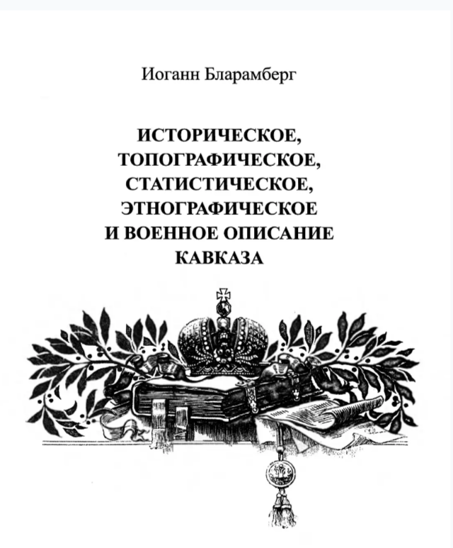 Книга эта была написана И.Бларамбергом в 1834 году и очень долгое время находилась под грифом «совершенно секретно» и использовать ее могли только офицеры Генштаба России. Связано это было с тем, что в книге очень подробно произведено исследование Кавказа не только его этнографического состава, но и топографии региона. По сути, данное исследование Кавказа НЕ ИМЕЕТ АНАЛОГОВ.