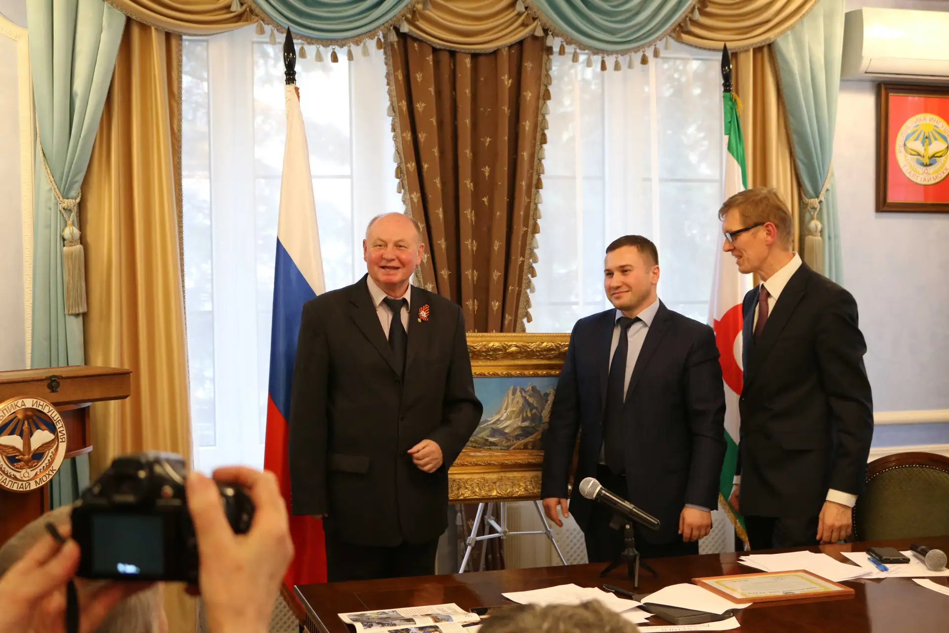 Мало кто знает, что картина замечательного художника Александра Шилова «Олимп Ингушетии» побывала в космосе. Будучи Постпредом в Москве в 2016 году, впервые представили это произведение широкой публике на круглом столе.