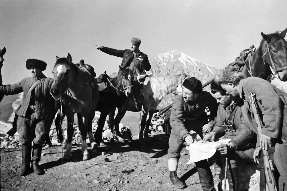 Поделиться WhatsApp Телеграмм ВКонтакте Электронная почта В горах Северного Кавказа. Идет уточние боевой задачи. 1942 год.